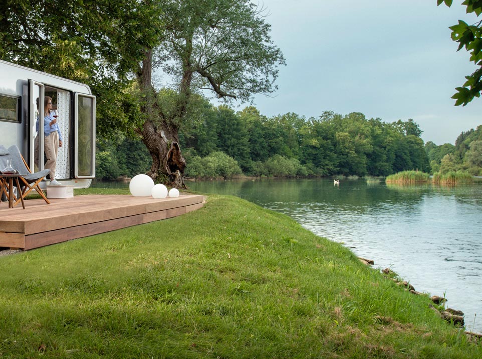 Zet hem neer op je speciale, favoriete plek of verplaats hem, net als een gewone caravan. Het kan je ultieme vakantie-thuis zijn aan het meer, in de bergen, aan zee, weg van alles en gehuld in je eigen luxe.